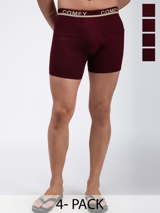 Pack of 3 maroon solid trunks, has an outer elasticated waistband and a double layered contoured pouch