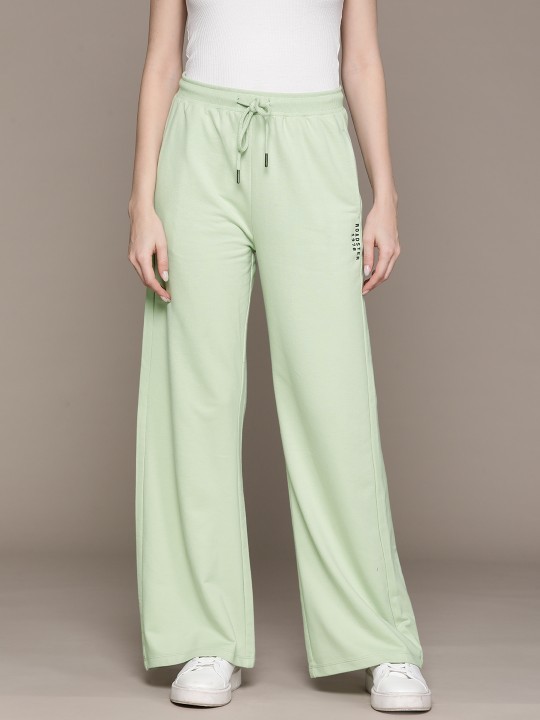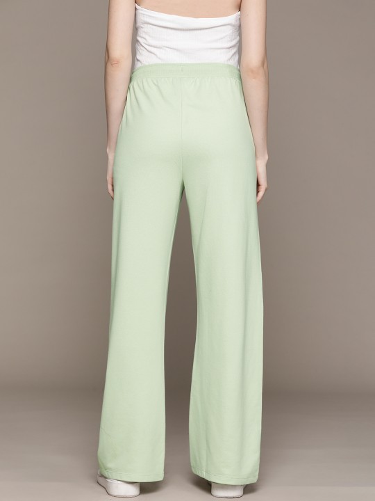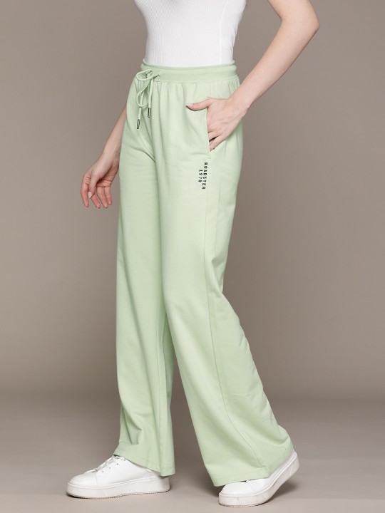 Sea green solid track pants, regular fit, has an elasticated waistband with drawstring closure, 2 pockets