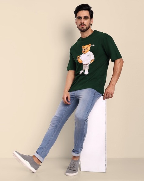 • Tom Hiddle Mens 100% Cotton Bio Washed 190 GSM Graphic Printed Oversized Tshirt